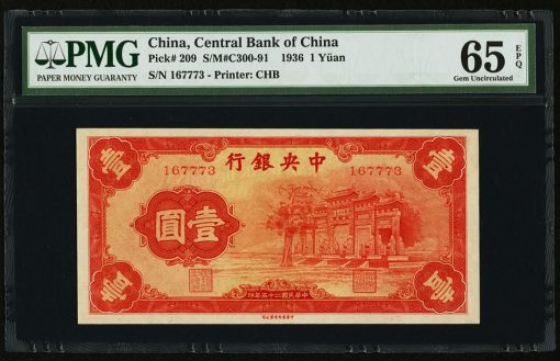 WORLD CURRENCY: 1936 Central Bank of China 1 Yuan brings $84,000