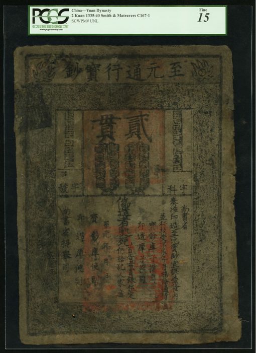 - A Chinese Empire Ming Dynasty 1 Kuan 1368-99 Pick AA10: $14,400