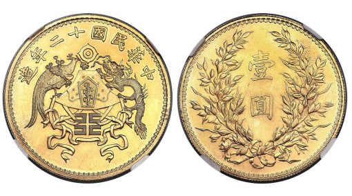 - Republic. Sun Yat-sen brass Pattern “Birds Under Junk” Dollar 1929/1932 MS64 NGC: $38,400
