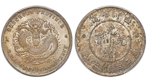 Also in very high demand was a Kuang-hsü 50 Cents ND (1901-08) MS63 PCGS, Szechuan mint, KM-Y237.2, L&M-347, Kann-146, dragon with smaller face and essentially perfect reverse lettering, which drew offers from 17 bidders before hammering at $72,000 – nearly three times its low pre-auction estimate.