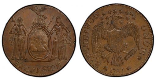 1787 Excelsior, Standing Indian/New York arms, one of only about 12 known.