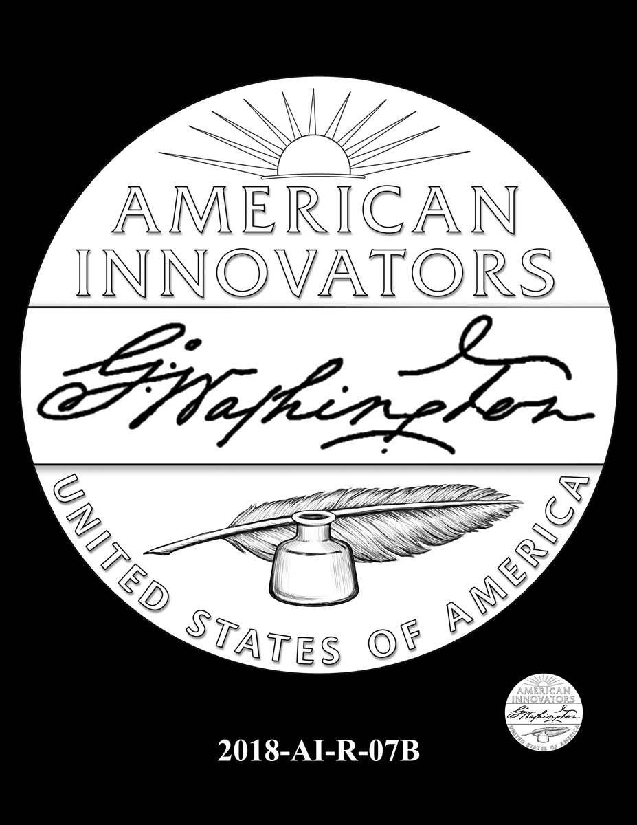 Reverses will be unique with four designs each year, beginning in 2019, as well as the optional one for 2018. As mandated in the Act, the reverse for a 2018 dollar must include the inscriptions "United States of America" and "American Innovators." It must also show a representation of the signature of George Washington as it appeared on the first United States patent.