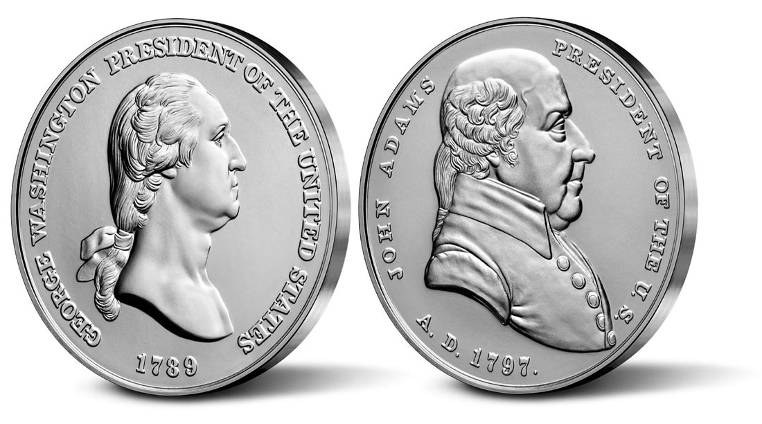 The United States Mint this week updated its online store with information, images and pricing for the first two Presidential Silver Medals honoring George Washington and John Adams, the nation’s first and second Presidents. Both launch on Aug. 16 at noon Eastern Time.