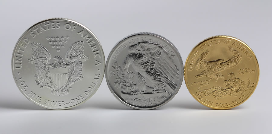 Here are photos showing Silver, Palladium and Gold Eagles side by side:
