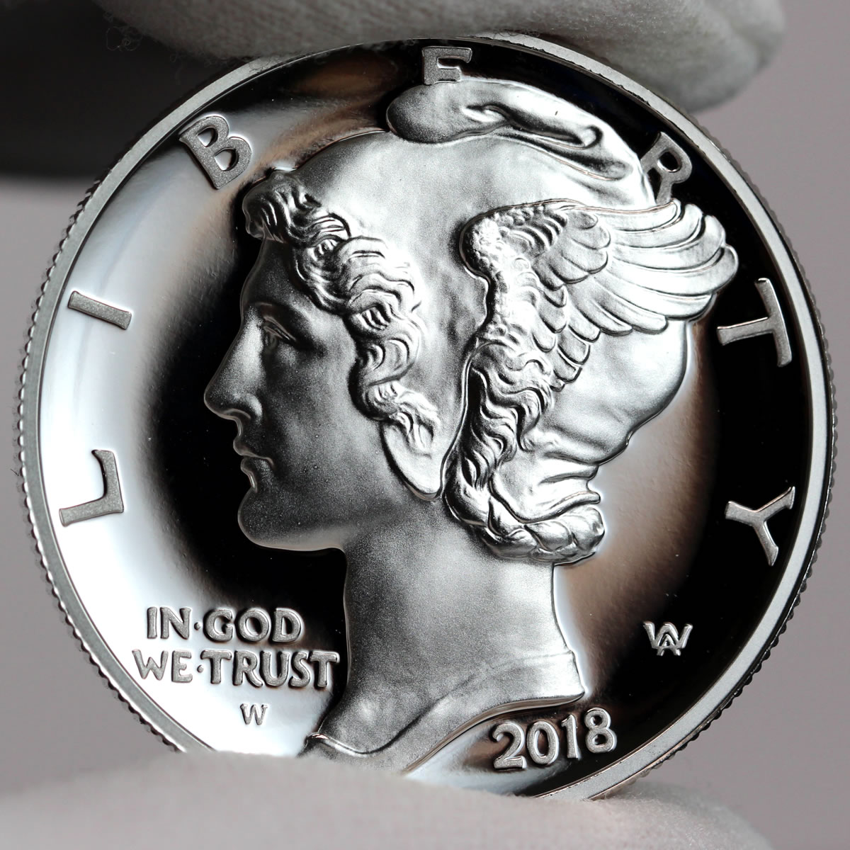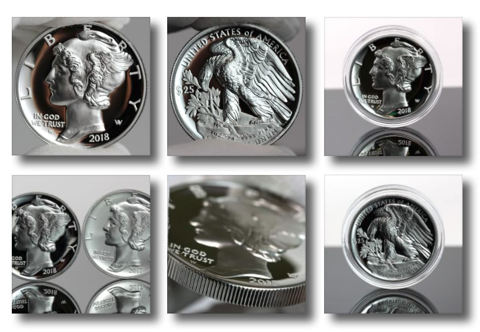 Palladium Eagle obverses (heads) bear a high-relief likeness of Adolph Weinman’s "Winged Liberty" design that first appeared on obverses of 1916 Mercury dimes.