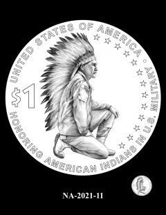 Seventeen proposed designs were introduced for the 2021 dollar. The year’s coin pays tribute to the service of American Indians in the U.S. armed forces.