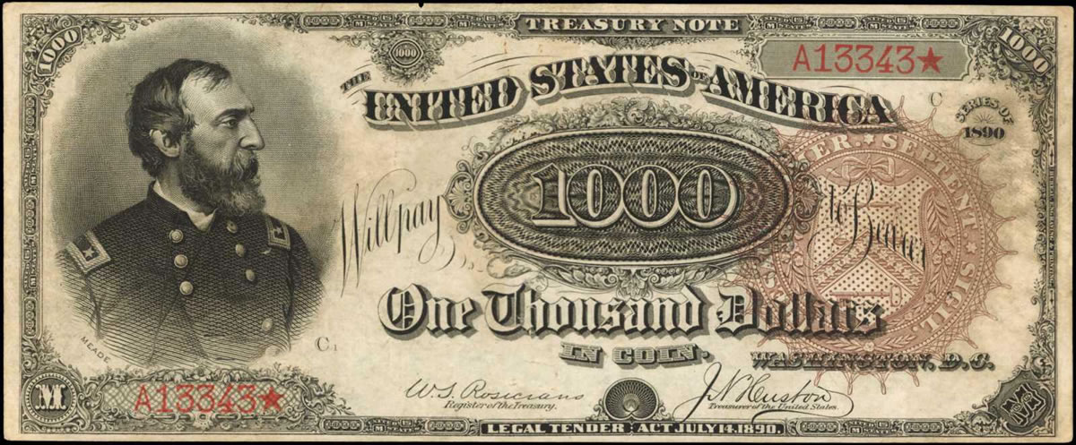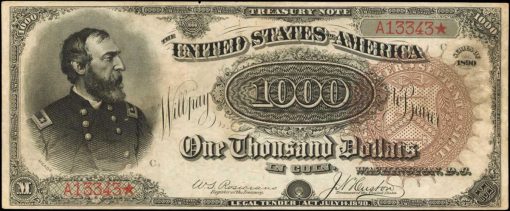 The highlight of the evening was the "Holy Grail" of American currency, the note voted to the top spot in Q. David Bowers and David Sundman’s 100 Greatest American Currency Notes. Lot 3042, the Anderson example of the 1890 $1000 "Grand Watermelon" Treasury Note, graded About New 50 by PCGS Currency, is one of only two Fr. 379a notes in private hands.
