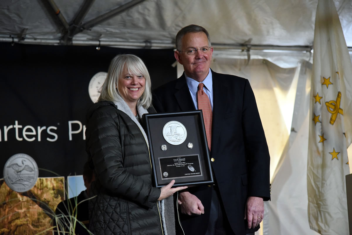 In addition, Artistic Infusion Program artist Chris Costello attended the ceremony. Costello created the image found on the quarter’s reverse.