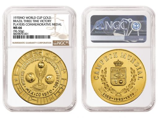 Numismatic Guaranty Corporation® (NGC) has certified a very rare gold medal struck by Mexico for the Brazilian soccer team to celebrate them as the first to win three World Cups. The historic feat was achieved in 1970 in Mexico, which hosted the World Cup tournament that year.