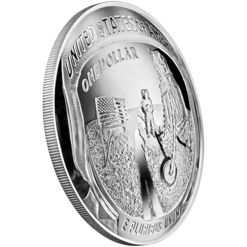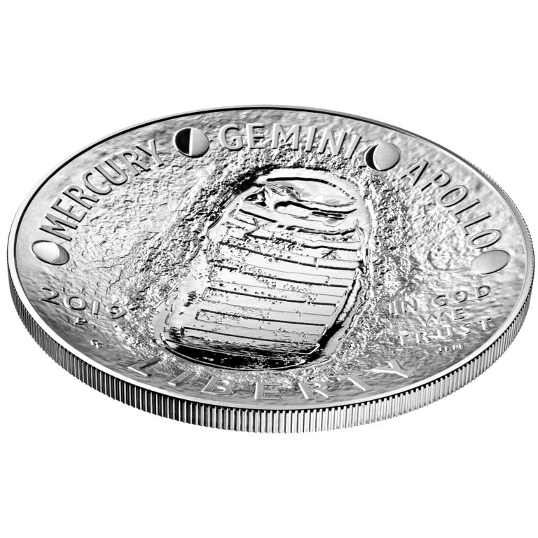 Before Thursday, the Mint had published only line art designs of the Apollo 11 coins. Available now and offered below are images of the coins’ obverse and reverse as well as angled views.
