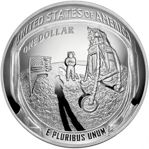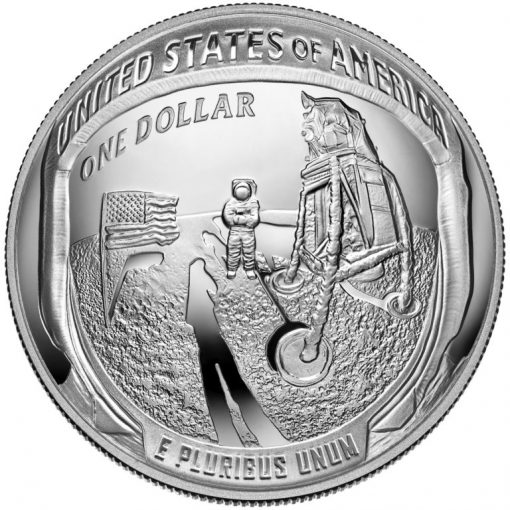 Obverses of these coins are the same. As required, the U.S. Mint invited American artists to create an obverse design that was emblematic of the United States Space Program leading up to the historic mission.