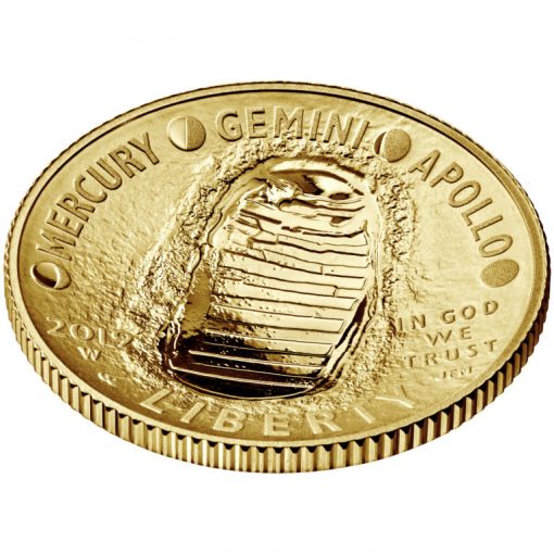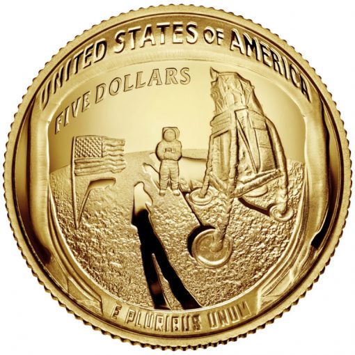 Under Public Law 114-282, Congress directed the U.S. Mint to produce and issue up to 50,000 $5 gold coins, 400,000 silver dollars, 750,000 clad half dollars and 100,000 five-ounce $1 silver coins to commemorate the 50th anniversary of the first manned moon landing. Next July will mark that anniversary landing by Apollo 11’s Neil Armstrong and Buzz Aldrin.