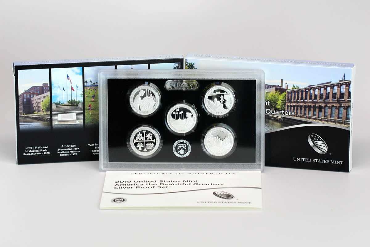 The United States kicked off sales last week of two collector products — a 5-coin set of 2019 silver quarters and a 3-coin set of 2019 Lowell National Historical Park quarters. The pair of sets were the U.S. Mint’s top weekly sellers.