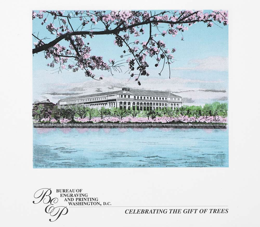 The print’s release coincided with the opening day of the National Cherry Blossom Festival — an annual spring celebration in Washington, DC, commemorating the March 1912 gift of 3,000 Japanese cherry trees from the Mayor of Tokyo to the city.