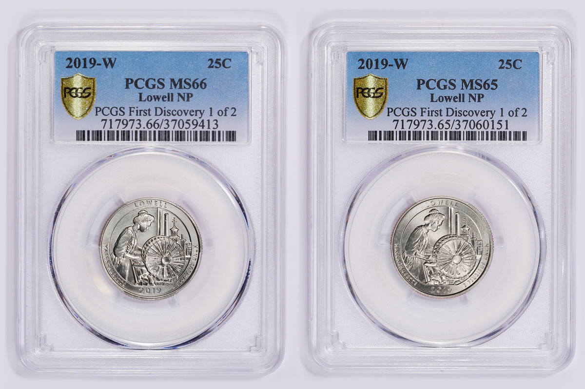 Two avid coin collectors, one in Kansas and the other in Virginia, have agreed to split the $5,000 bounty offered by Professional Coin Grading Service (www.PCGS.com) for almost simultaneously submitting the first 2019 "America the Beautiful" Lowell National Historical Park quarter-dollars with a West Point mint mark. Both submissions arrived on the same day at PCGS headquarters.