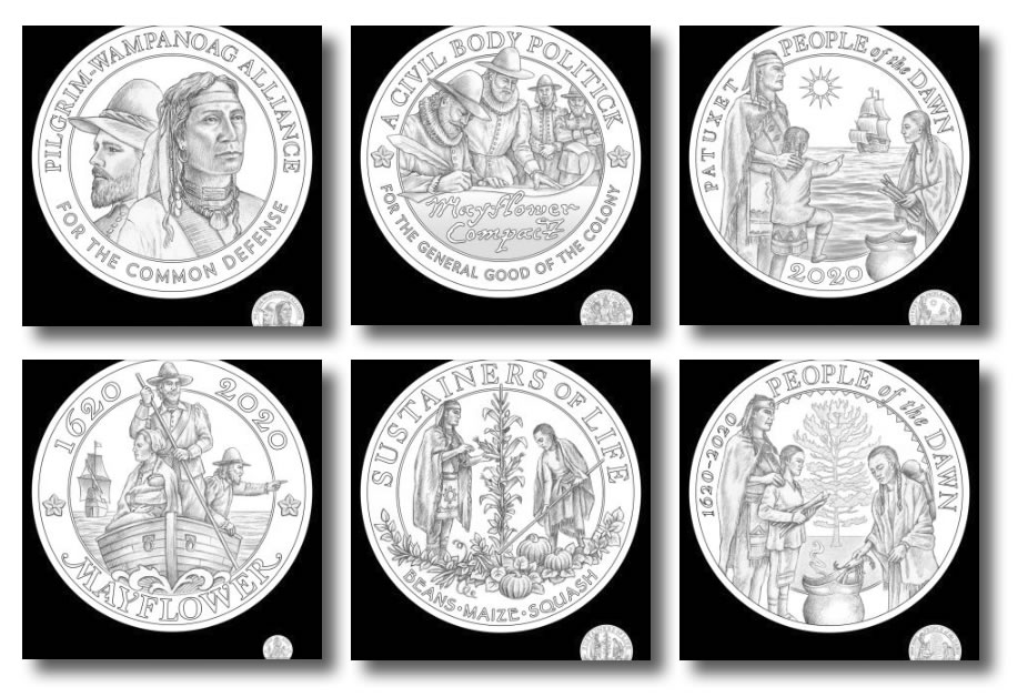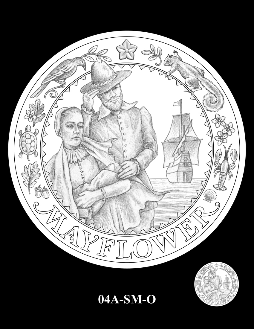"To develop the design portfolio, the Mint worked with a panel of subject matter experts who helped identify the concepts as well as the impact the Mayflower voyage had on the pilgrims, the Wampanoag Indians, and the history of our country," stated April Stafford, Director of the U.S. Mint’s Office of Design Management.
