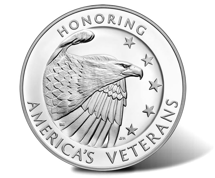An added inscription reads "HONORING AMERICA’S VETERANS." Benjamin Sowards created the design and Joseph F. Menna sculpted it.