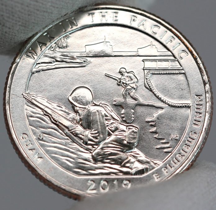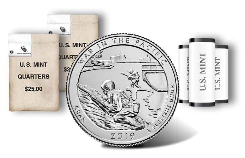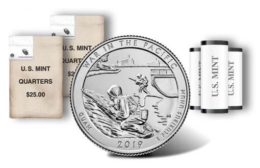 Today, June 3, the United States Mint started selling rolls and bags of 2019 War in the Pacific National Historical Park quarters. Featuring a design emblematic of the historical area located in the territory of Guam, the coin marks the 48th release from the U.S. Mint’s America the Beautiful quarter dollar series.