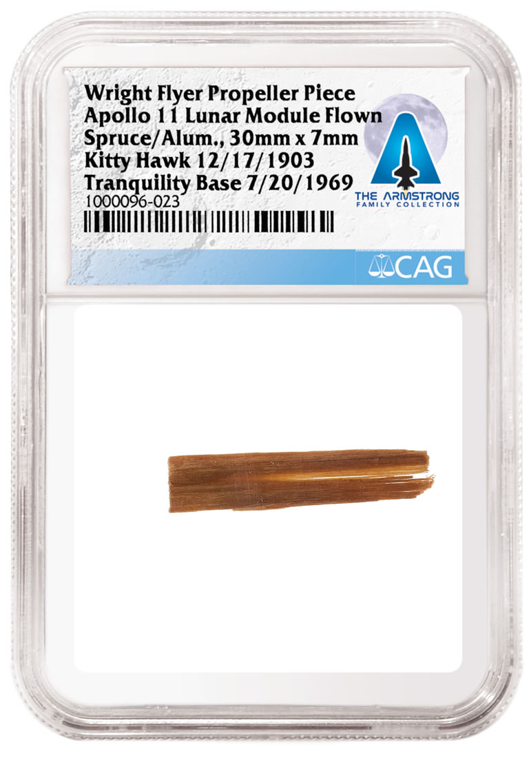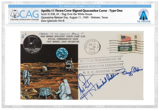 "CAG was honored to preserve the authenticity and provenance of the artifacts in The Armstrong Family Collection, one of the most important collections ever brought to auction," said Mark Salzberg, Chairman of CAG and NGC. "Together, these amazing items tell the story of the man who embodied an extraordinary triumph of human engineering and perseverance 50 years ago."