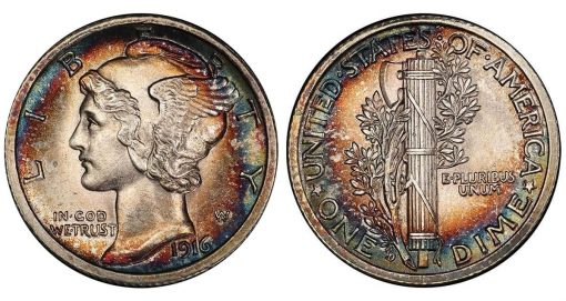 - Lot 197. 10C 1916-D Mercury. PCGS MS64 FB CAC. Realized $38,775