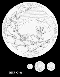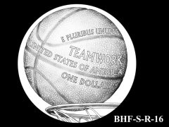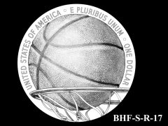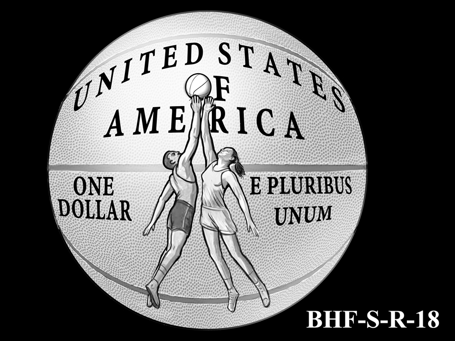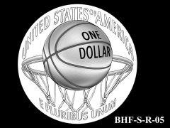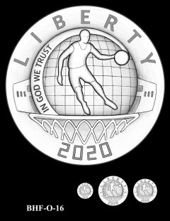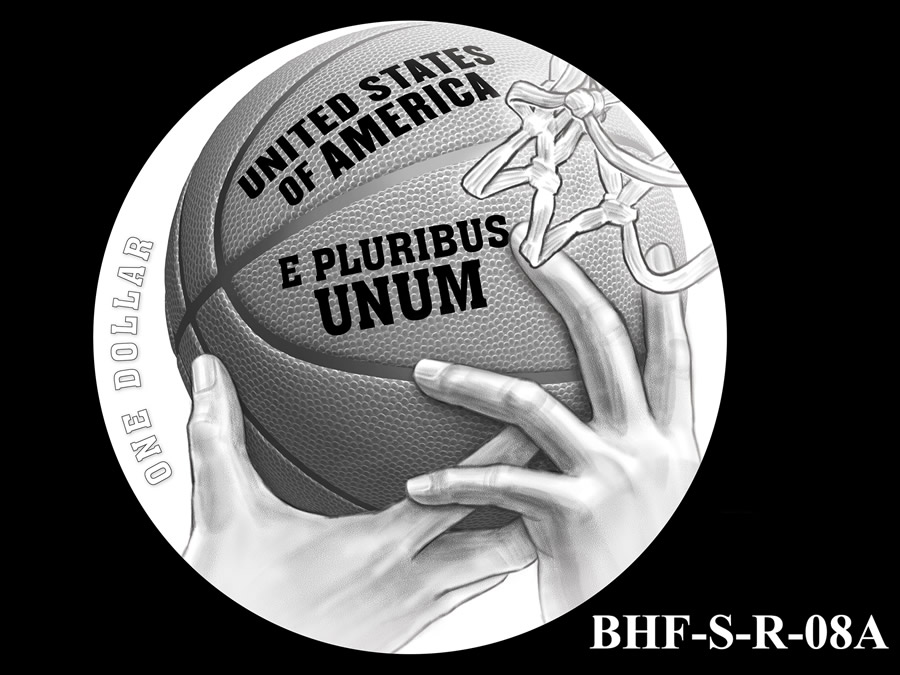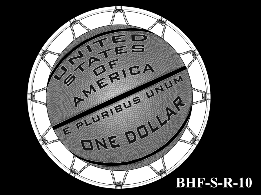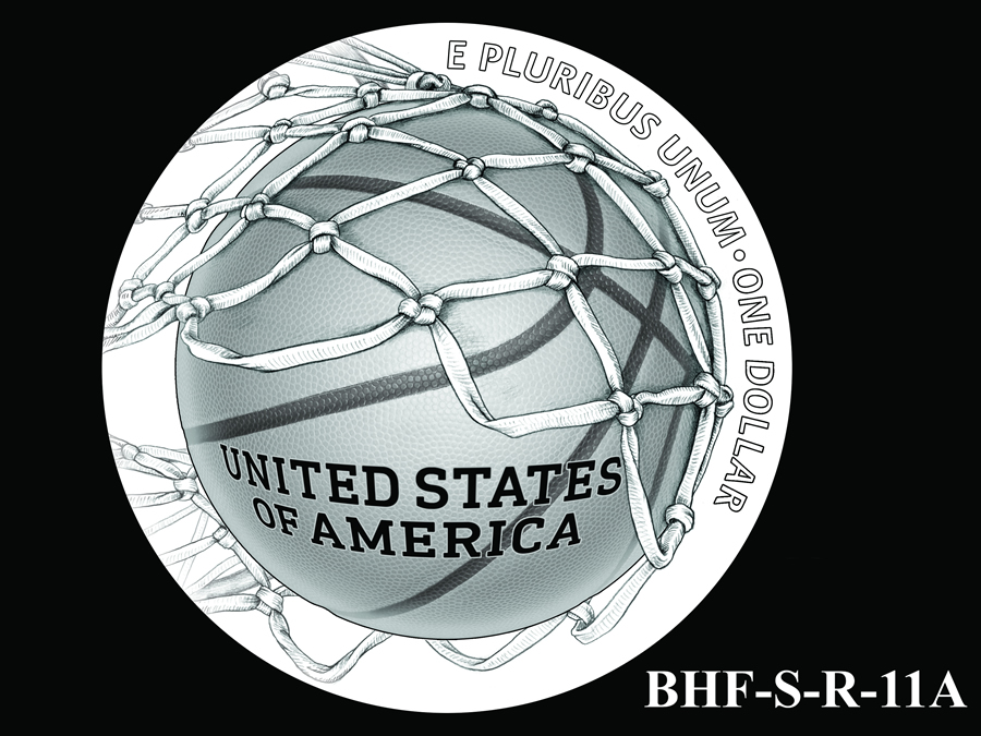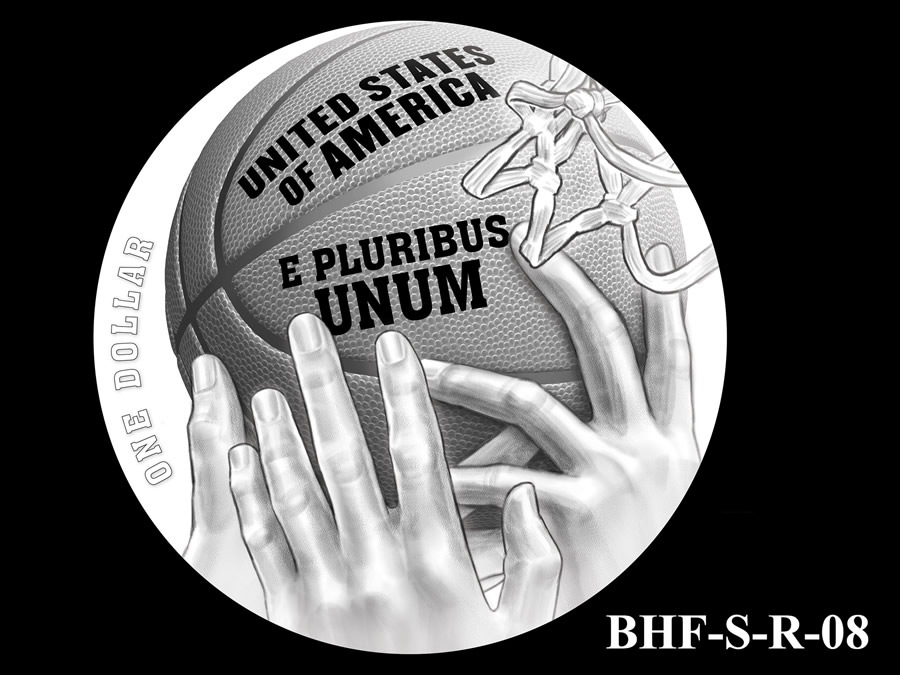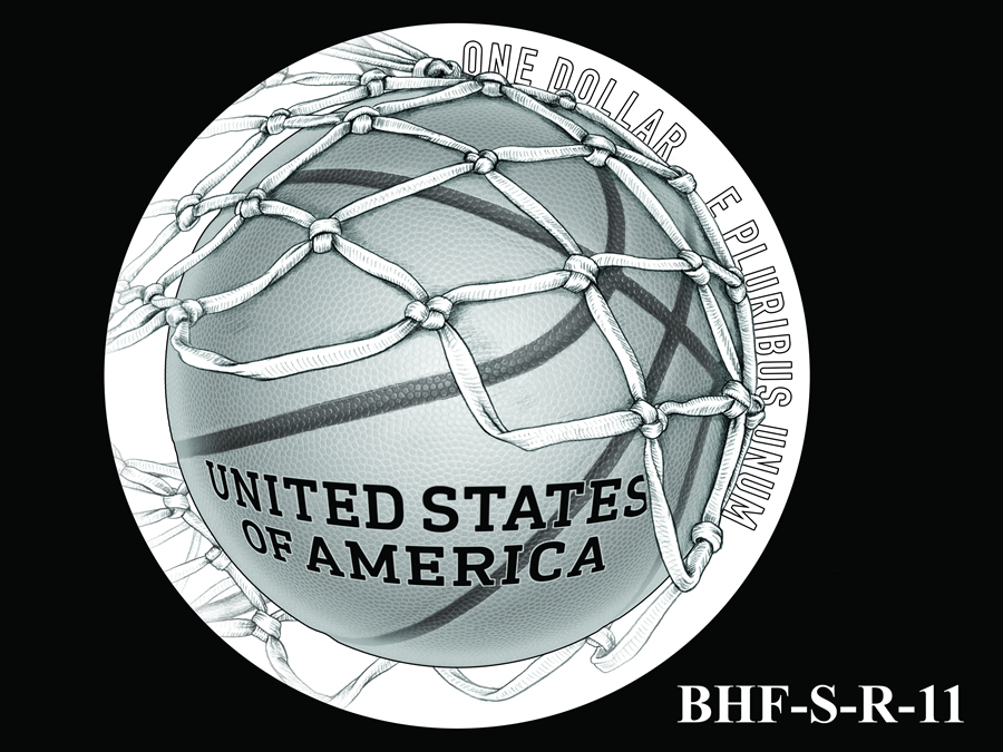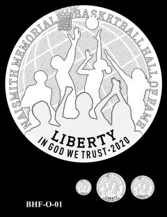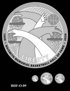 The $5 gold coins, silver dollars and clad half dollars will share the same obverse design, which must be emblematic of the game of basketball. Obverse candidates resulting from a competition process follow.