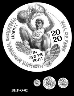 As directed by Public Law No: 115-343, the U.S. Mint in 2020 will issue $5 gold coins, silver dollars and clad half dollars in recognition of the 60th anniversary of the Naismith Memorial Basketball Hall of Fame (www.hoophall.com).