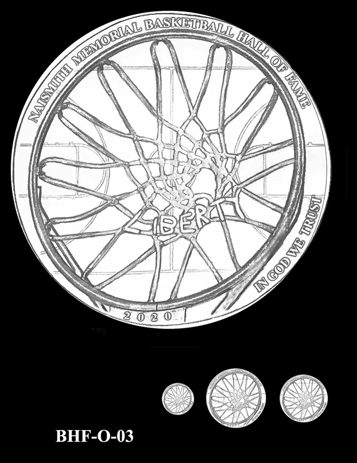 Reverse Candidate Designs for 2020 Basketball Hall of Fame Commemorative Coins