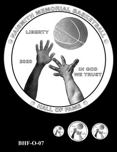 Possible reverse designs were developed by the U.S. Mint while potential obverse designs came about from a public design competition. These candidates were presented today for review by the Citizens Coinage Advisory Committee (CCAC). The Commission of Fine Arts (CFA) will look them over on Thursday, July 18. The Secretary of the Treasury will select the final designs after receiving recommendations from both committees and consulting with liaisons of Naismith Memorial Basketball Hall of Fame.