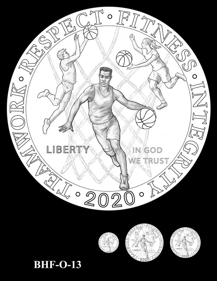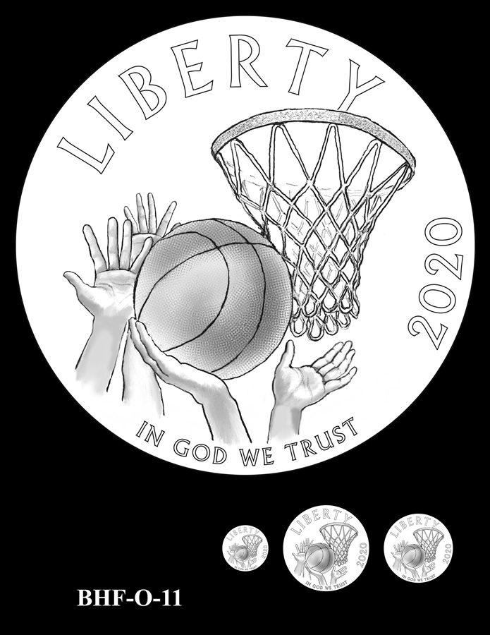 Obverse Candidate Designs for 2020 Basketball Hall of Fame Commemorative Coins