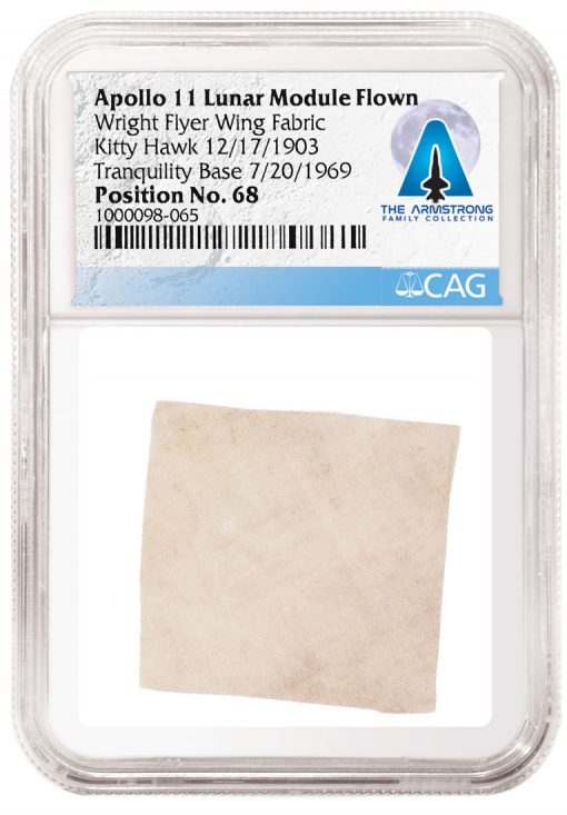 NGC graded hundreds of coins, medals and tokens in the CAG-certified Armstrong Family Collection. The collection also includes flags, patches, photographs, papers, magazines, buttons, record albums and even pieces of the Wright Flyer, perhaps the most famous airplane of all time.