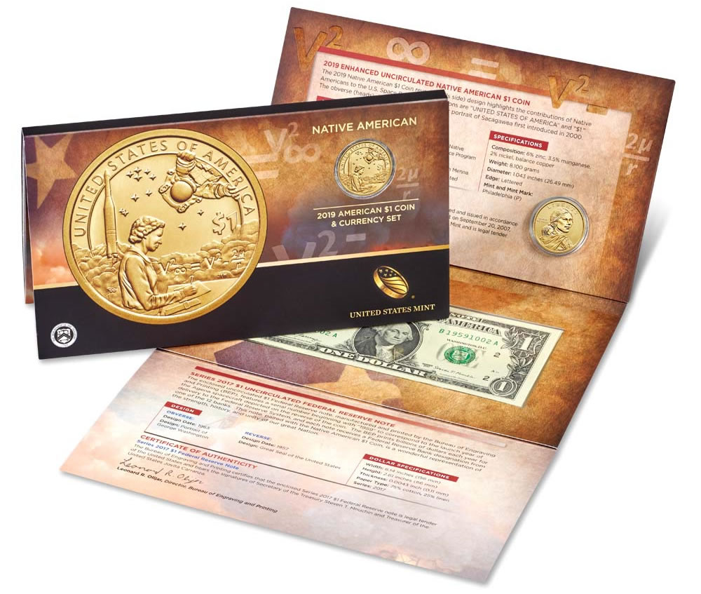 Featuring a limited mintage, a strict initial household order limit, a note with a unique serial number, and a coin with a special finish, the 2019 Native American $1 Coin & Currency Set is now available.