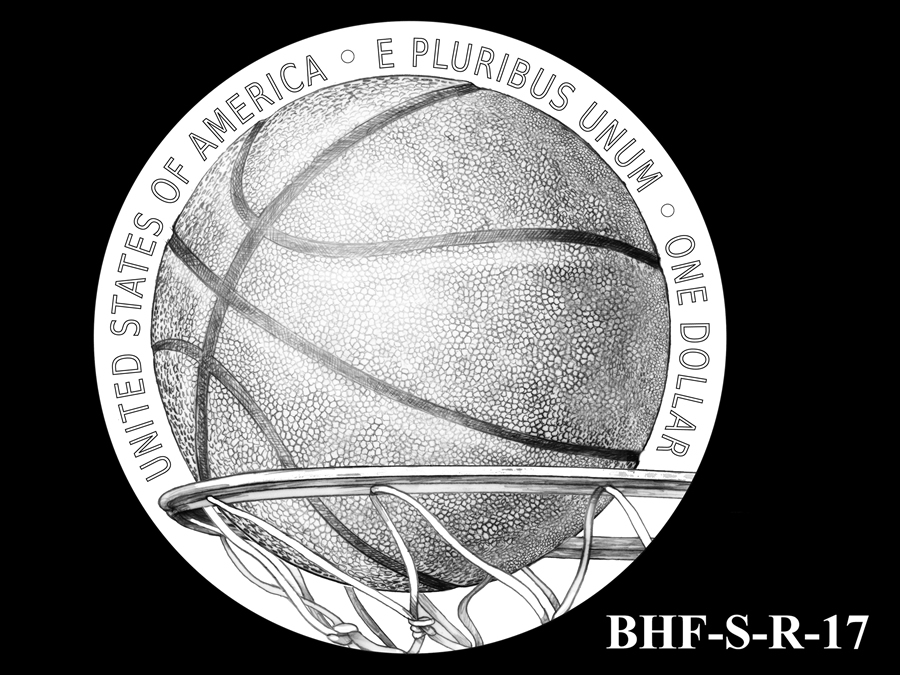 The CFA, meanwhile, preferred design BHF-R-17 which shows a basketball about to pass through a net. By vote count, this design ranked second highest among members of the CCAC. It was also amid four reverses favored by the Basketball Hall of Fame.