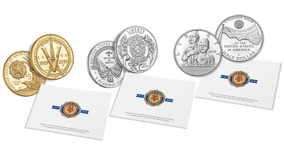 Three sets issued jointly today by United States Mint and the Bureau of Engraving and Printing (BEP) continue celebrations of the centennial of the American Legion.