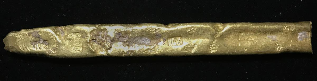 Ingots from famous wrecks like the "Tumbaga wreck" of ca. 1528 will be found in the sale. The Atocha, sunk in 1622 off Key West, Florida, will be represented by three gold "finger" bars, one of which is a long specimen weighing 1,325 grams and estimated at $50,000 and up that last appeared in the 1987 Caesars Palace auction of Atocha artifacts.