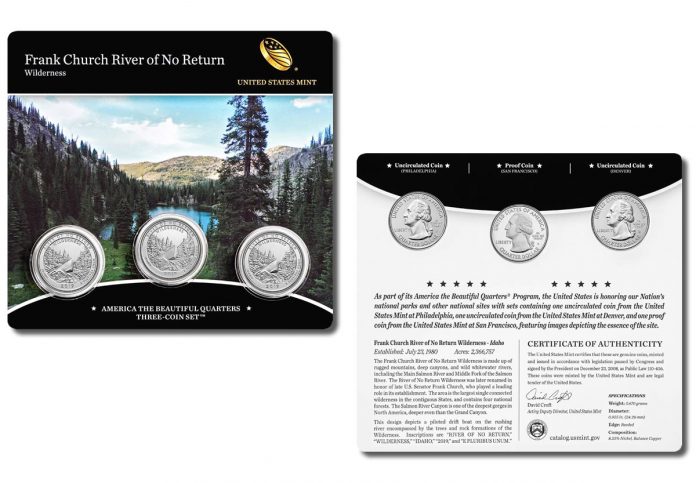 2019 Frank Church River of No Return Wilderness Quarter Three-Coin Sets may be ordered directly from the United Sates Mint via this link to its America the Beautiful related products. Orders may also be placed by calling 1-800-USA-MINT (872-6468).