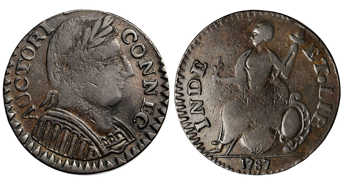 Superb surfaces and superior eye appeal was the theme among the Connecticut coppers, complementing the assortment of rare die marriages. A gorgeous Rarity-7 1787 Miller 1.2-mm "Muttonhead" garnered $26,400 in lot 5115, while $22,800 was realized by the Rarity-8 1786 Miller 3-D.4 "Scholar’s Head" in lot 5088.