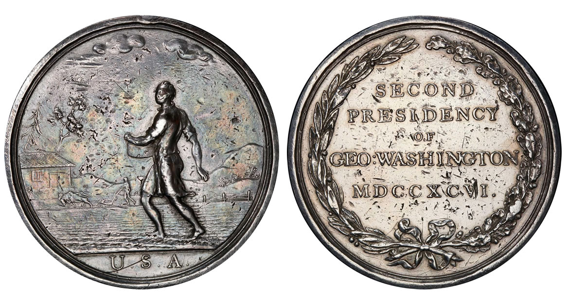 Closing the live portion of the auction was a monumental selection of Washingtoniana from the Collections of the Historical Society of Pennsylvania. The vast majority of items from this offering can be traced back to the November 1897 bequest of William Spohn Baker, who was the seminal scholar on Washington portrait medals.