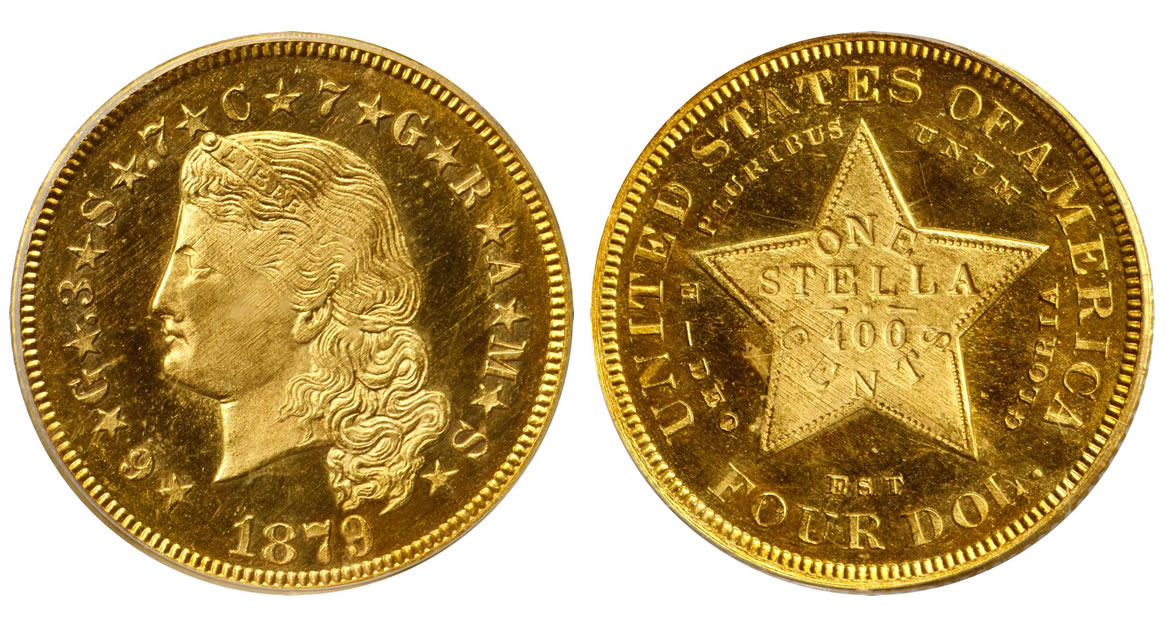 A Proof-65 Cameo (PCGS) example of the legendary 1879 $4 gold Stella earned 204,000 in lot 3152, while an 1802 half dime graded AU-50 (NGC) realized the top price for a non-gold coin at $192,000 in lot 3045.