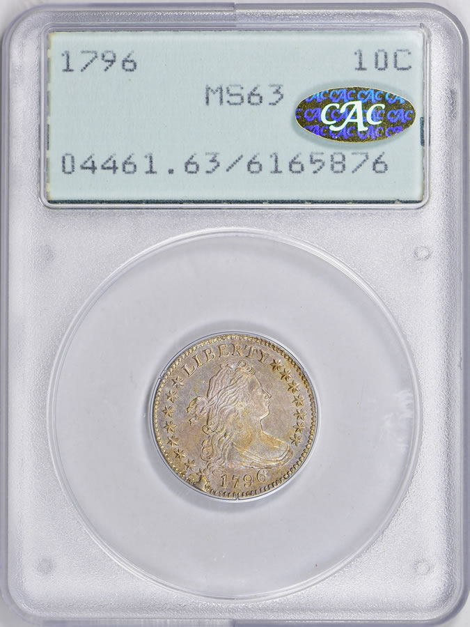1796 Draped Bust Dime PCGS MS-63 (CAC Gold Label) OGH (1st Gen) — Sold for $92,812