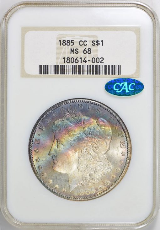 1885-CC Morgan Silver Dollar NGC MS-68 CAC OH (Toned) — Sold for $81,562