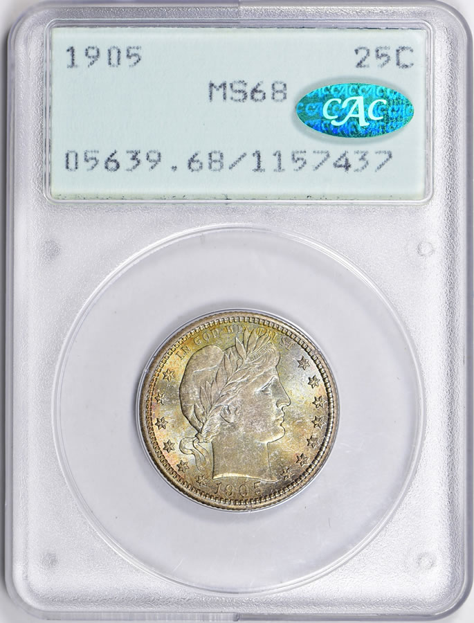 1905 Barber Quarter PCGS MS-68 CAC OGH (1st Gen) (Toned) — Sold for $101,251