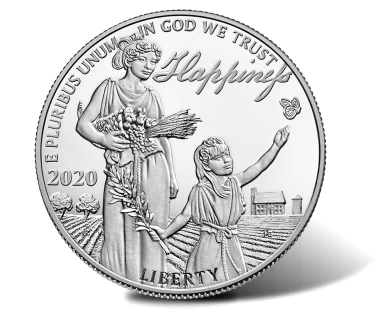 This year’s obverse design is emblematic of the "Pursuit of Happiness." As described by the U.S. Mint, it depicts: