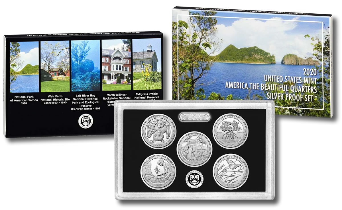 Today, Feb. 20, the United States Mint released its 2020 America the Beautiful Quarters Silver Proof Set™. Found within it are five 2020 coins composed in 99.9% silver with reverse designs honoring national sites in American Samoa, Connecticut, the U.S. Virgin Islands, Vermont and Kansas.