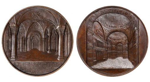 Starting off this incredible sale are numerous offerings from the brothers Wiener, led mostly by Jacques. During the mid-19th century, the Wieners were responsible for some of the most detailed and engaging architectural medals produced, and their craftsmanship makes them popular even today, with many collecting them serially. Highlights of this section include renditions of the Hagia Sophia in Istanbul, St. Isaac’s Cathedral in St. Petersburg, and the Cathedral Notre Dame in Strasbourg (graded PCGS SPECIMEN-65).