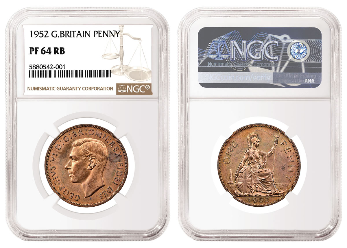In Great Britain, the year 1952 saw a change of monarch, the first home-use microwave oven and the Great Smog of London, but nothing so common as a penny issued by the Royal Mint. Only one Great Britain penny is believed to have been struck in 1952, and it was recently certified by Numismatic Guaranty Corporation® (NGC®).