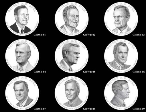 The Citizens Coinage Advisory Committee (CCAC) reviewed the George H.W. Bush dollar designs today, April 14, and the Commission of Fine Arts (CFA) appraised them on Feb. 20. The CFA lacked a quorum on the 20th but confirmed their selection in their meeting held March 19.
