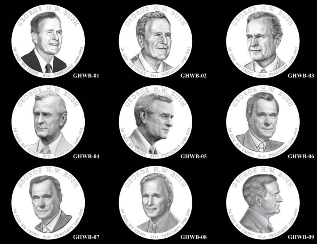 Both panels recommended obverse design #1 which shows a three-quarter portrait of the president smiling. This design was also favored by the Bush family.
