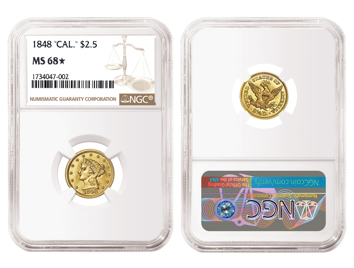 It was closely followed by an 1848 "CAL." Quarter Eagle graded NGC MS 68★ that realized $300,000.