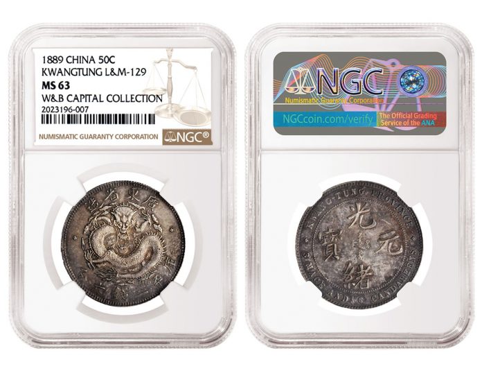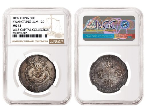 Another highlight was a China — Kwangtung 1889 Pattern 50 Cents graded NGC MS 63 that bested its pre-sale estimate with a $192,000 price realized. This desirable pattern issue was part of the second series of coins issued by the Kwangtung Mint.