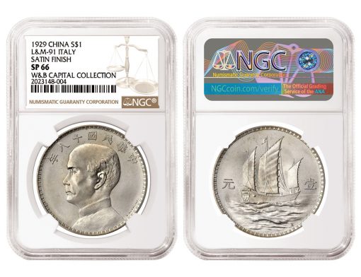 The top result in the coin auction was a China 1929 L&M-91 Italy Satin Finish Silver Dollar graded NGC SP 66 that realized $252,000 — more than double its pre-sale estimate.
